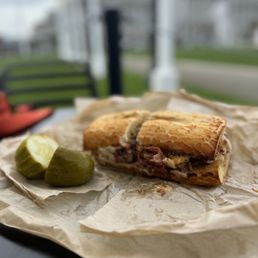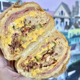 I've had this place bookmarked for the longest time but never had the chance to go. Finally i get to try it!! For sandwiches, they are definitely more on the expensive side but for a good reason! They give you sooo much meat. I'm usually an italian sub person so I had to try the #1, But i actually found that i liked the pastrami one more! I would definitely come back to try the other sandwiches here. There was a small line when i got there 1:30pm on a saturday but the line moved quickly and the food came out rather fast. There's no where to sit though so we took the sandwiches to the ferry building and sat there to eat. Highly recommend if you're looking for good sandwiches